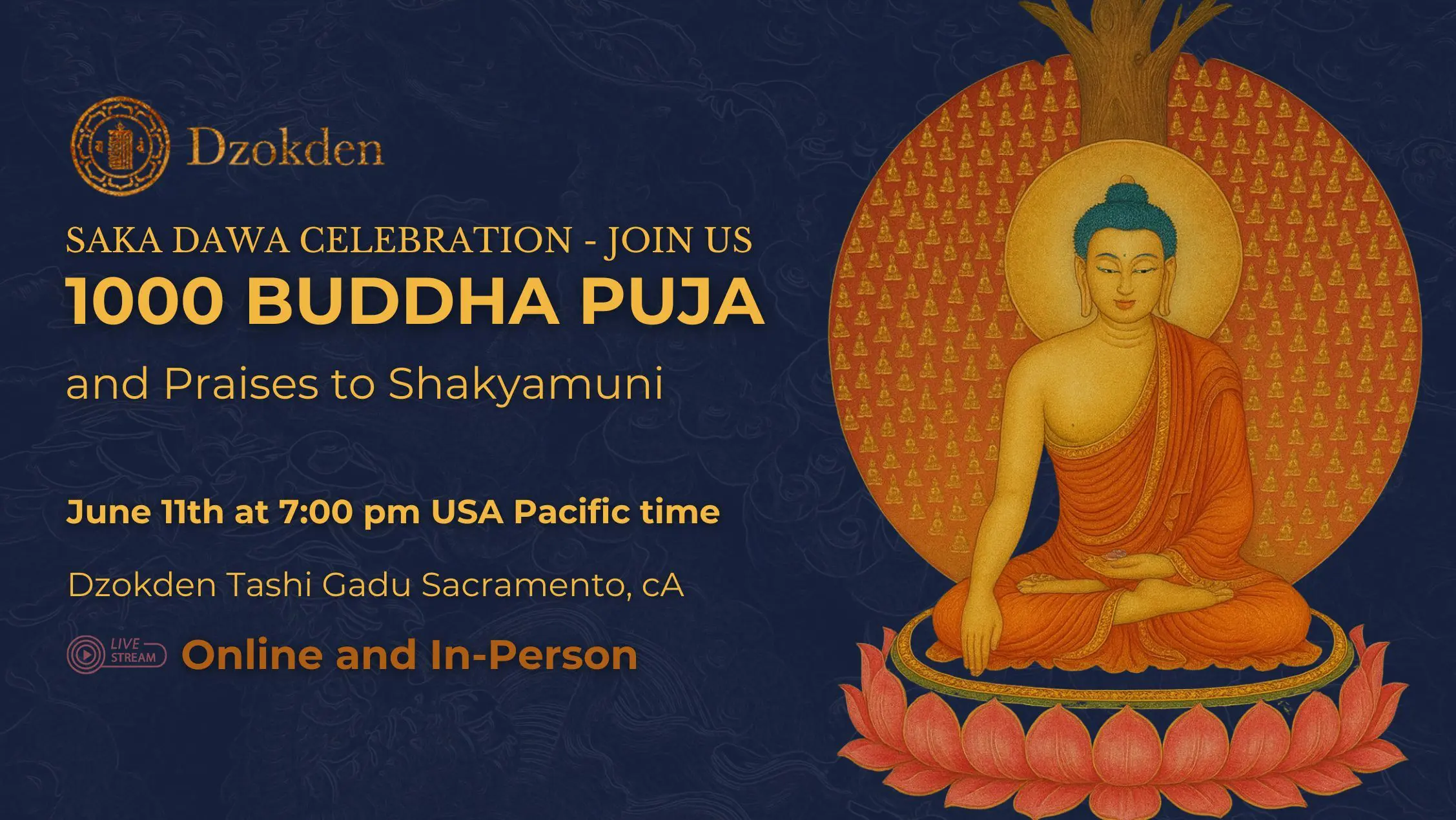 Each year on Saka Dawa, the most sacred day in the Buddhist calendar, we come together as a global Dzokden community to recite Praises to Shakyamuni Buddha and chant the 1000 Buddhas Puja.