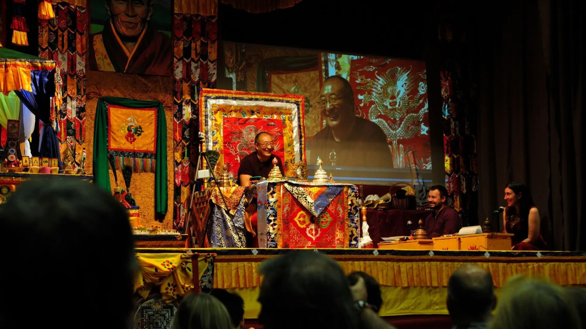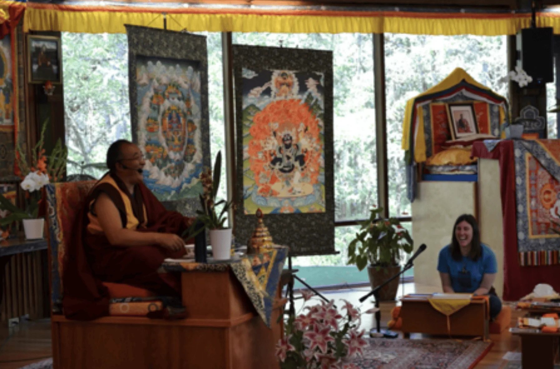 When Rinpoche travels and gives teachings, he can only give the teachings for so many hours in a row for his health. We often invite a senior student to help lead practices or teach a section of the workshop.