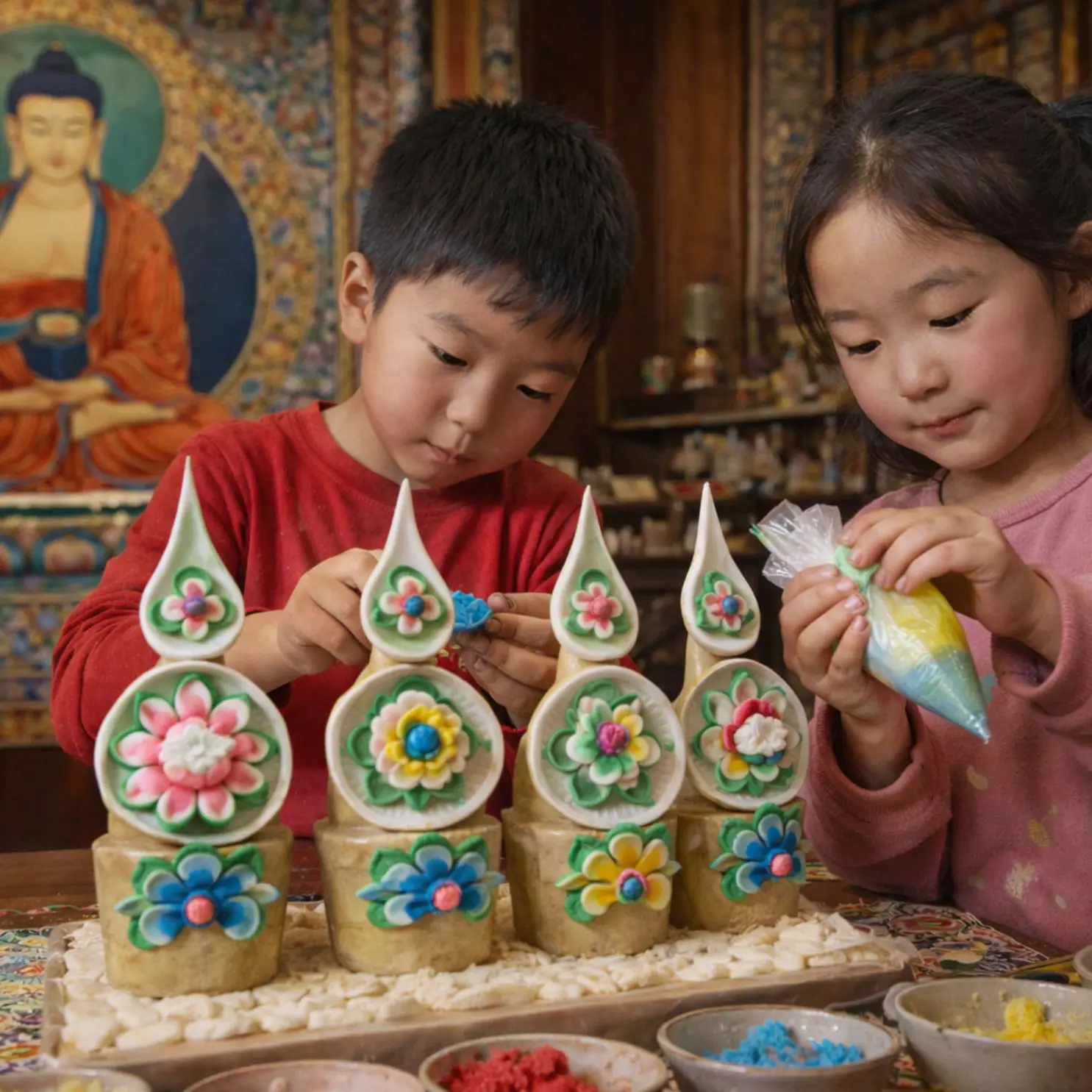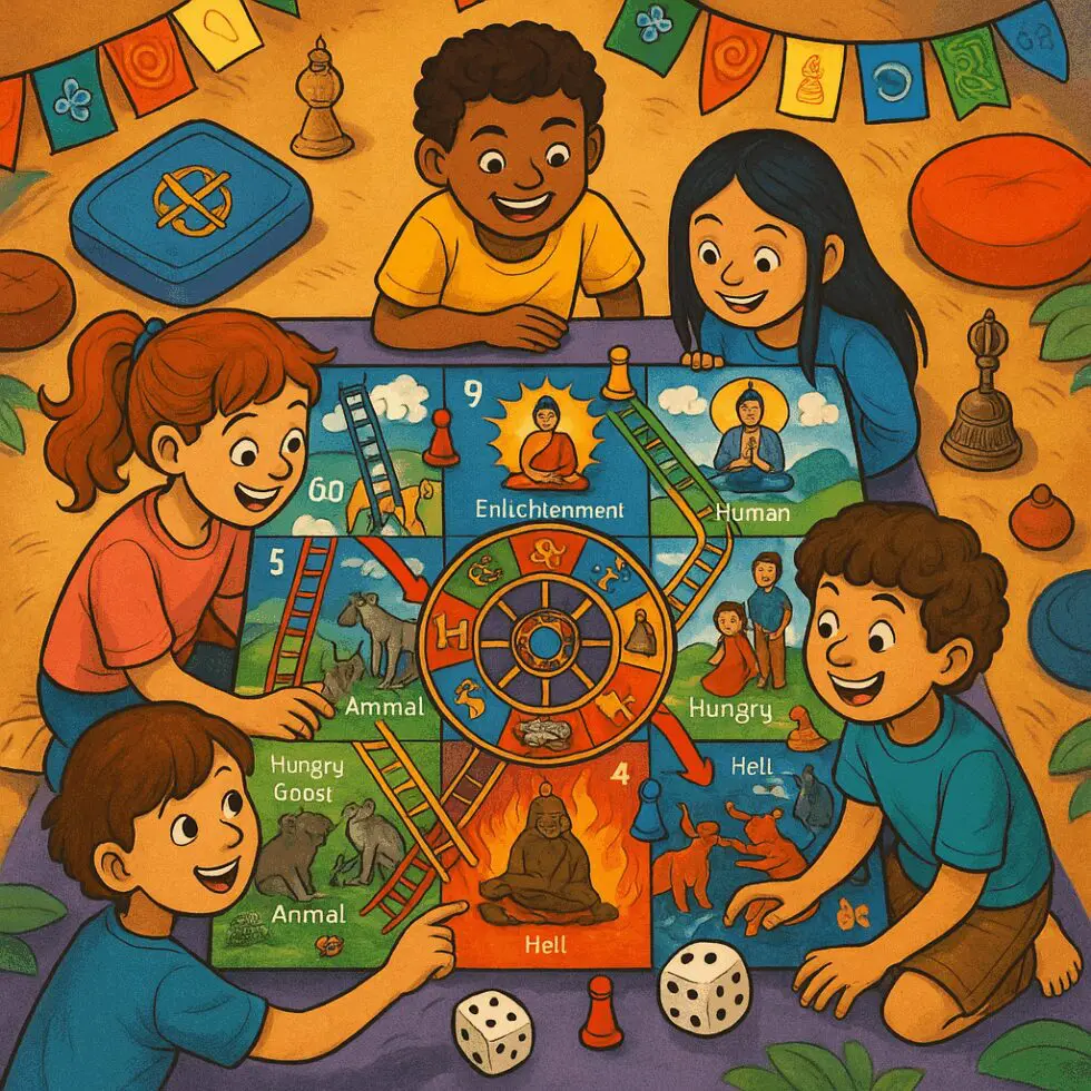 The Dzokden Children’s Program is a collection of initiatives dedicated to creating a natural bridge for youth to experience the Dharma and enter the path of Kalachakra. These efforts are designed to make the teachings of Khentrul Rinpoche accessible and joyful, allowing the transformative power of Kalachakra to take root naturally in young minds. We are developing a variety of creative materials that include: